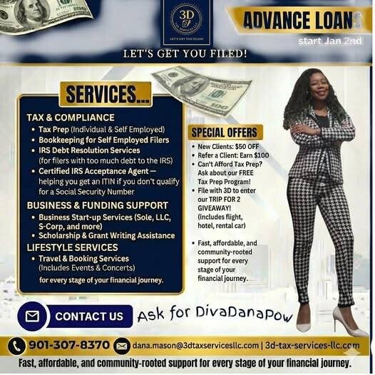 “We built this for the people who’ve been overlooked, underserved, and underestimated. At 3D, your refund is respected, your business is protected, and your legacy is the priority.”