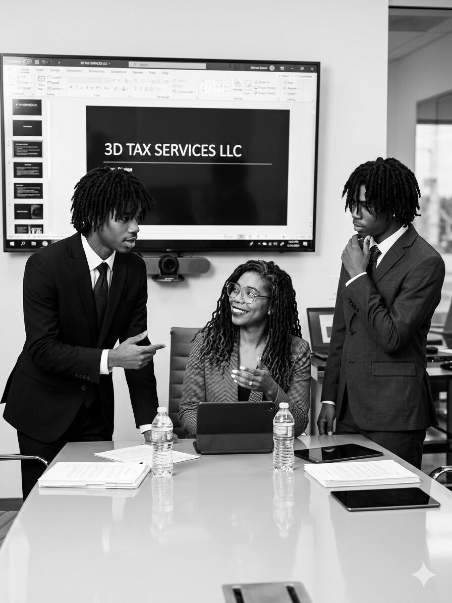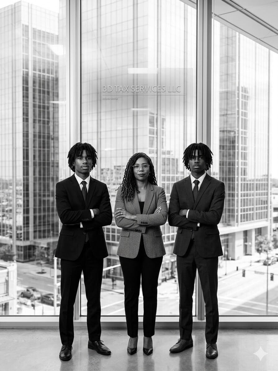 It all came from a deeper place—a desire to build something meaningful, not just for my community, but for my legacy. The name “3D” isn’t just clever branding. It represents my two sons, Devin and David—they’re my ‘3D’ alongside the dimension, depth, and drive I put into this business. Every service we offer reflects that love and intention: Tax, Branding, and Nonprofit Impact.